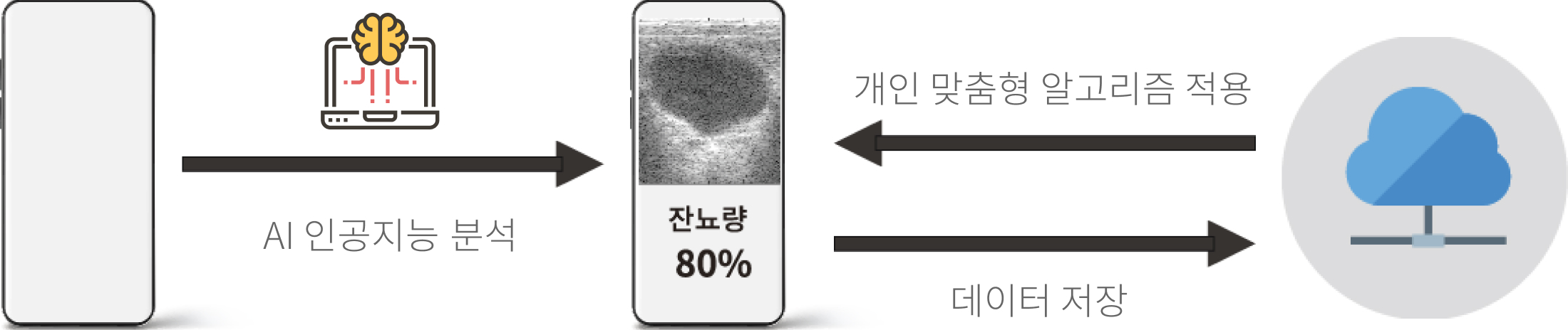 AI 알고리즘 초음파 신호 특성, 잔뇨량 추산 및 각도 변화를 보정하여 90% 이상 정확도를 가지는 AI 알고리즘을 통해 분석합니다.
